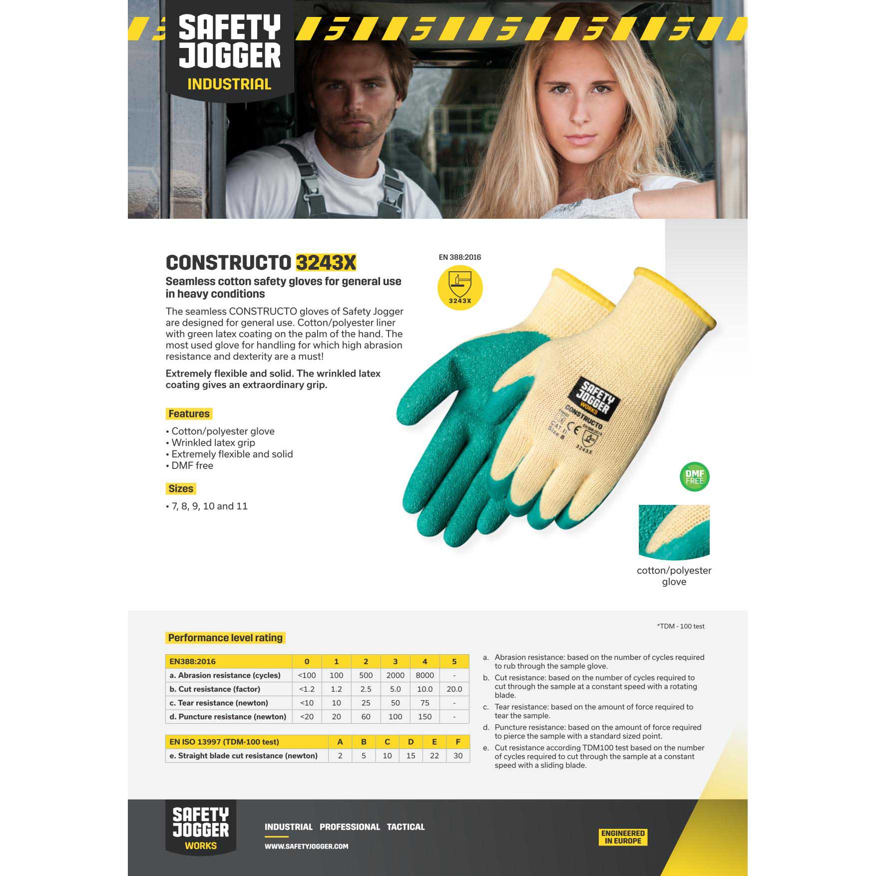 – Găng tay bảo hộ Jogger Constructo cung cấp khả bảo vệ tốt cho đôi tay theo tiêu chuẩn EN388:2016.
