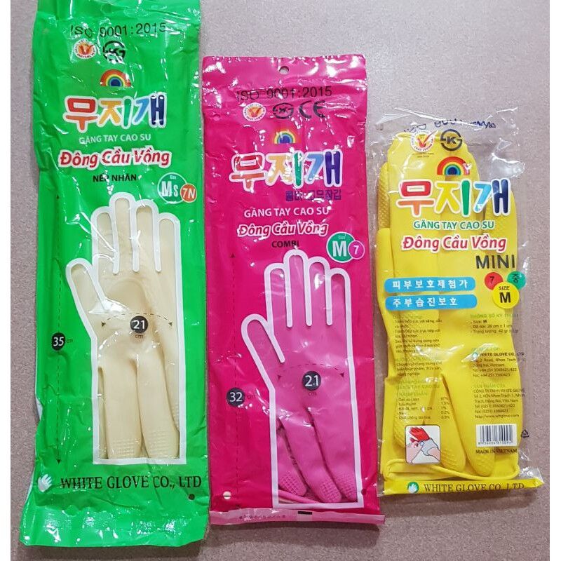 Găng tay cao su Đông Cầu Vồng được sử dụng để làm sạch trong nhà, chế biến thực phẩm và phổ biến khi dùng với các chất tẩy rửa chuyên nghiệp để dọn dẹp các cửa hàng, quán xá hoặc sử dụng ở những nơi công cộng khác. Găng tay cao su có khả năng chống mài mòn, cắt và xé tuyệt vời, sản phẩm có độ bám chắc chắn và khéo léo.