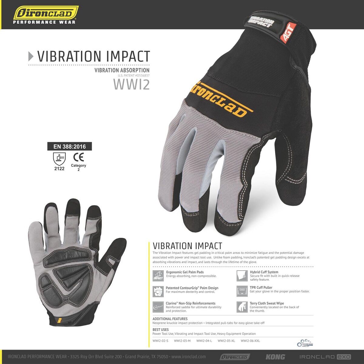 Găng tay này có lớp đệm gel ở những khu vực quan trọng của lòng bàn tay để giảm thiểu sự mệt mỏi và thiệt hại tiềm ẩn liên quan đến việc sử dụng công cụ tác động và sức mạnh. Không giống như đệm bọt, nén và nhanh chóng hư hỏng, thiết kế đệm gel được cấp bằng sáng chế của Ironclad có khả năng hấp thụ rung động và va đập vượt trội và kéo dài suốt tuổi thọ của găng tay.