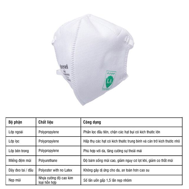 – Tiêu chuẩn : Đáp ứng QCVN 08:2012/BLĐTBXH, chứng nhận đạt chuẩn Niosh N95 TC-84A-8480 Part 42 CFR 84
