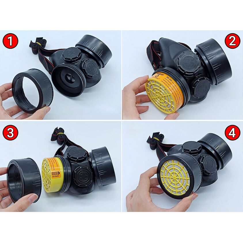 Tuy nhiên thì mặt nạ có thể dùng kèm với phin lọc để đạt được hiệu quả lọc hóa chất cao. Nếu lựa chọn phin lọc không phù hợp với môi trường thì sẽ không có tác dụng. Vì vậy phải đảm bảo lựa chọn và sử dụng đúng loại phin lọc được thiết kế chuyên dụng để loại bỏ các khí có trong môi trường đó.