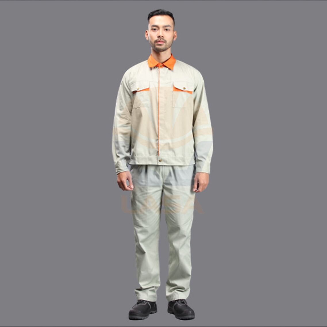 Quần áo bảo hộ là loại thiết bị bảo hộ được trang bị riêng cho người lao động trong quá trình làm việc. Chúng có nhiệm vụ bảo vệ cơ thể khỏi các tác nhân nguy hiểm có thể xảy ra trong quá trình thực hiện công việc như: nhiệt, dầu mỡ, các mẩu vỡ vật liệu… Tùy vào điều kiện từng môi trường và tính chất công việc khác nhau mà đồng phục bảo hộ sẽ được may khác nhau. Hiện nay, mẫu quần áo Pangrim Hàn Quốc – Ghi xám phối cam LS605 tại Việt Nam đang dần trở thành mặt hàng được ưa chuộng, bởi kiểu dáng thiết kế và chất liệu vải cao cấp.