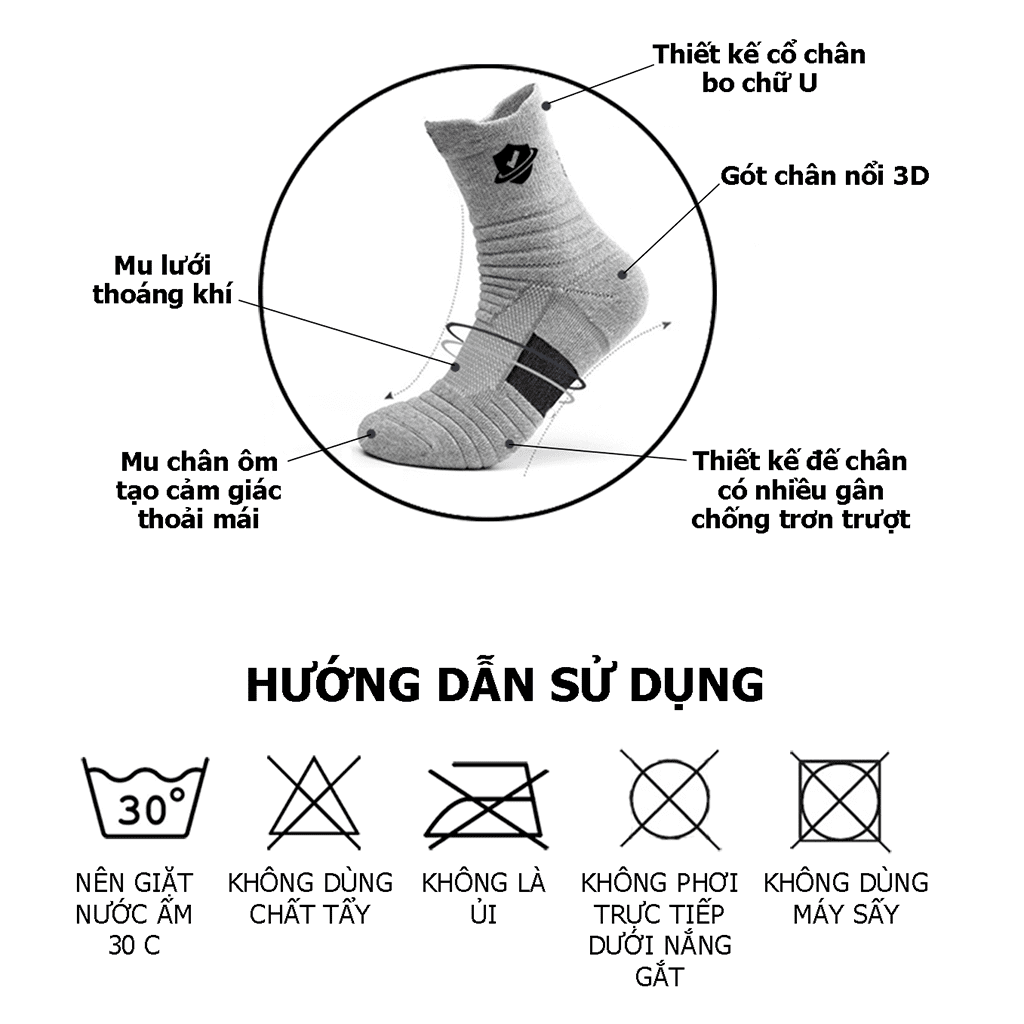 – Đặc tính chống trượt của tất giúp người sử dụng không bị trơn trượt khi di chuyển, giữ cho bàn chân cố định bên trong giày.