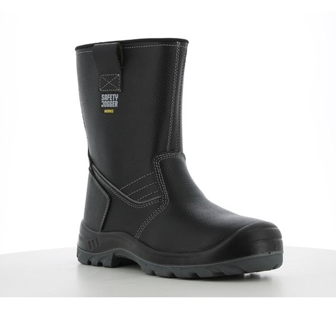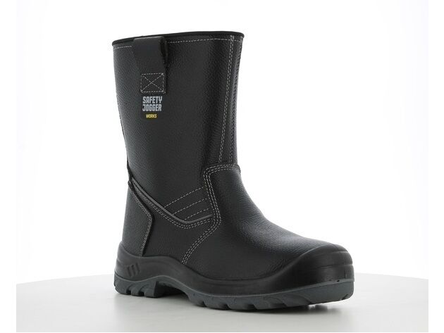 Ủng bảo hộ Jogger Bestboot với độ an toàn cao, được làm bằng da bò mặt chất lượng cao, chống thấm nước, màu đen, trong lót lưới nylon mềm mại, chống tĩnh điện, chống trầy xước SJ Flex, đế chống sốc, chống trượt, mũi thép chống dập ngón chân, đế PU/PU kết hợp lót thép chống đâm thủng.